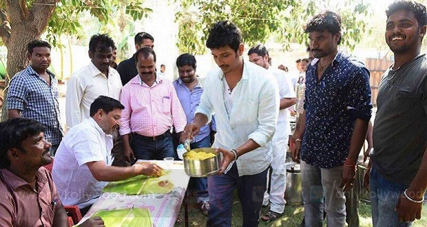 Jiiva, who celebrated his 32nd birthday on January 4th on the sets of Pokkiri Raja, served the entire team a sumptuous biriyani feast for lunch. The team is currently shooting a song sequence featuring Jiiva and Hansika in a grand set constructed in VGP theme park on the outskirts of Chennai.