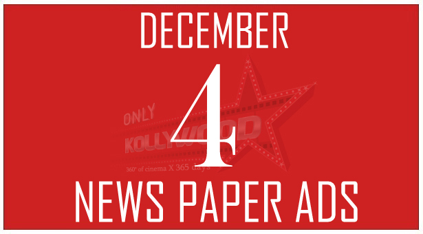 December 4th (2013) News Paper Ads.. Credits : Dinathanthi, DC, TOI, TNIE..